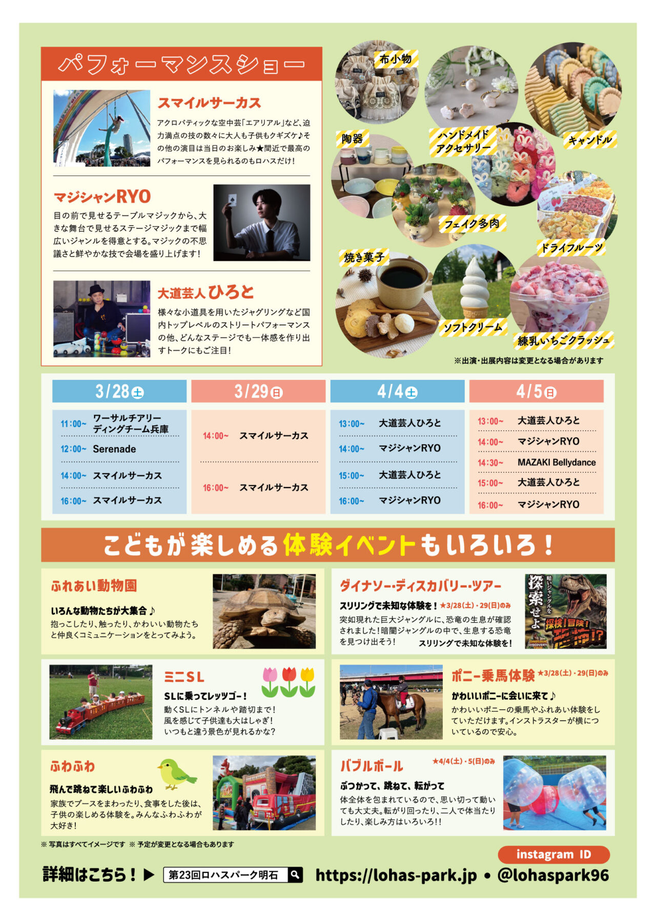 おしゃれでかわいくてエコな大人気イベント「第23回ロハスパーク明石」が、明石公園の西芝生広場と東芝生広場にて盛大に開催されます!健康と環境保護を重視した「ロハス」なライフスタイルをテーマに、なんと4日間で約280ものブースが大集結するんです!家族みんなで1日中楽しめる、この春大注目のイベント内容をたっぷりご紹介します!